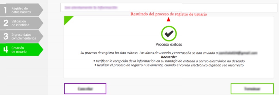 - Al finalizar el último punto, recibira un correo que debe validar para estar habilitado con su usuario en el portal personal.